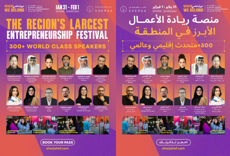 Organized by the Sharjah Entrepreneurship Center (Sheraa), SEF 2026 will take place from January 31 to February 1, 2026, at Sharjah Research, Technology, and Innovation Park (SPARK). The two-day festival will convene entrepreneurs, professionals, investors, and emerging talent from around the world for a packed agenda designed to address the realities of building, scaling, and sustaining businesses in a rapidly evolving economic environment.
